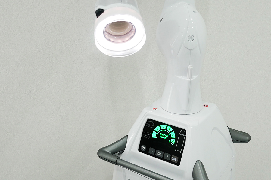 歯の治療を行うときは、歯の削りかす、血液、細菌など、目に見えない細かい粉塵が周囲に飛び散ります。粉塵が空気中に広がる前に口腔外バキュームで吸引し、院内の空気を清潔に保っています。